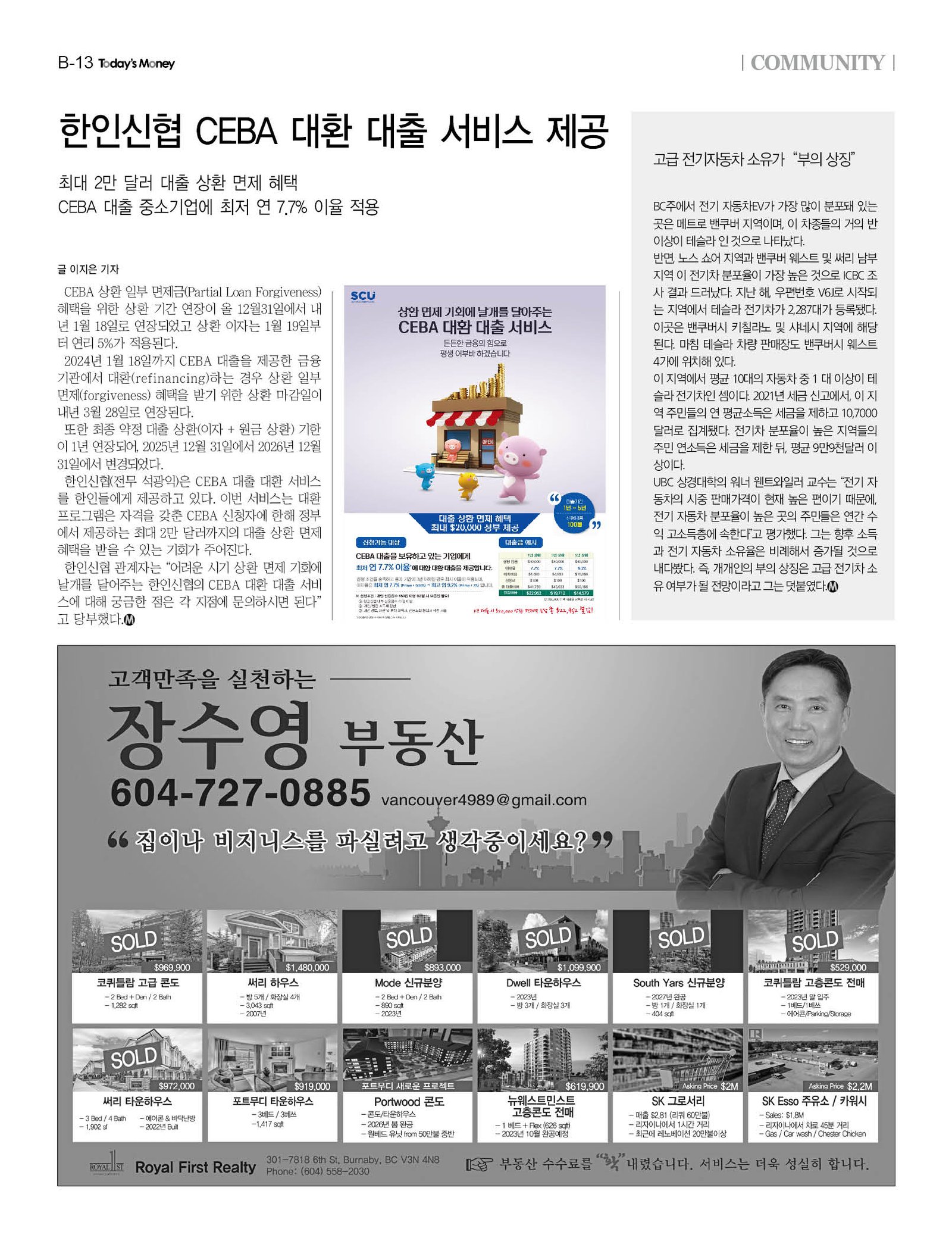 한인신협(전무 석광익)은 CEBA 대출 대환 서비스를 한인들에게 제공하고 있다. 이번 서비스는 대환 프로그램은 자격을 갖춘 CEBA 신청자에 한해 정부에서 제공하는 최대 2만 달러까지의 대출 상환 면제 혜택을 받을 수 있는 기회가 주어진다.