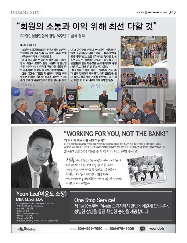 BC한인실업인협회(회장. 한용) 창립 36주년 기념식이 9월 3일 오후 2시 30분 실업인협회 사무실(버나비)에서 거행되었다.