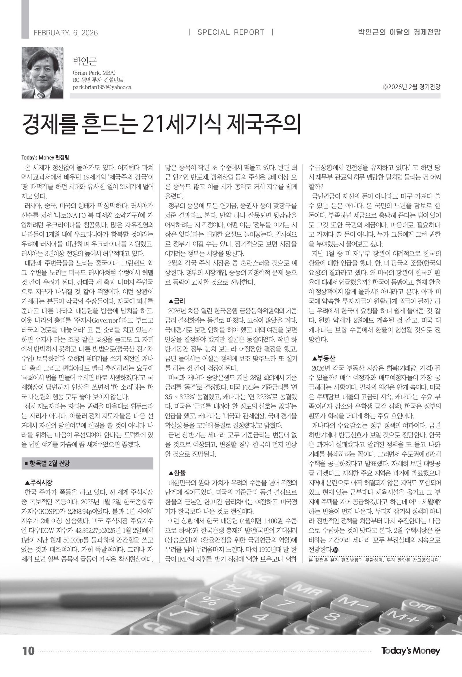 2026년 처음 열린 한국은행 금융통화위원회의 기준금리 결정회의는 동결로 마쳤다. 고심이 많았을 거다. 국내경기로 보면 인하를 해야 했고 대외 여건을 보면 인상을 결정해야 했지만 결론은 동결이었다. 작년 하반기동안 정부 눈치 보느라 어정쩡한 결정을 했고, 금년 들어서는 어설픈 정책에 보조 맞추느라 또 실기를 하는 것 같아 걱정이 된다.
