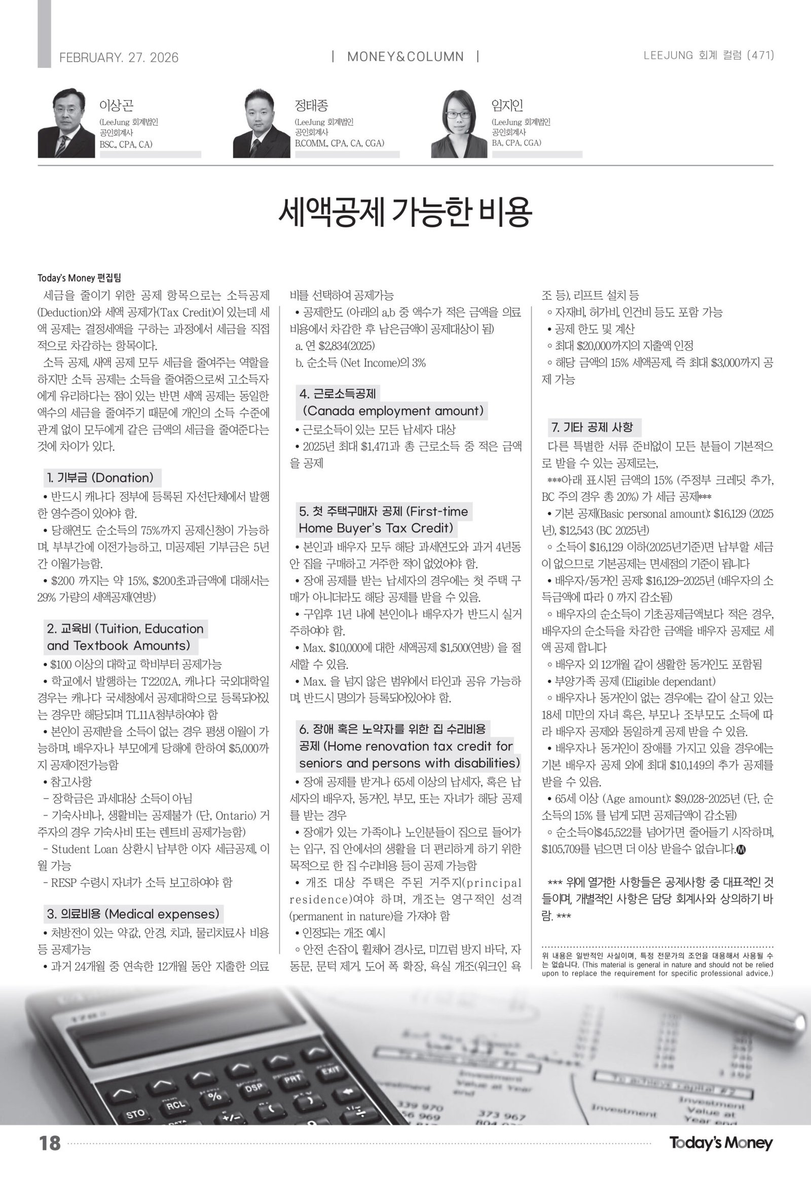- 장애 혹은 노약자를 위한 집 수리비용 공제 (Home renovation tax credit for seniors and persons with disabilities)