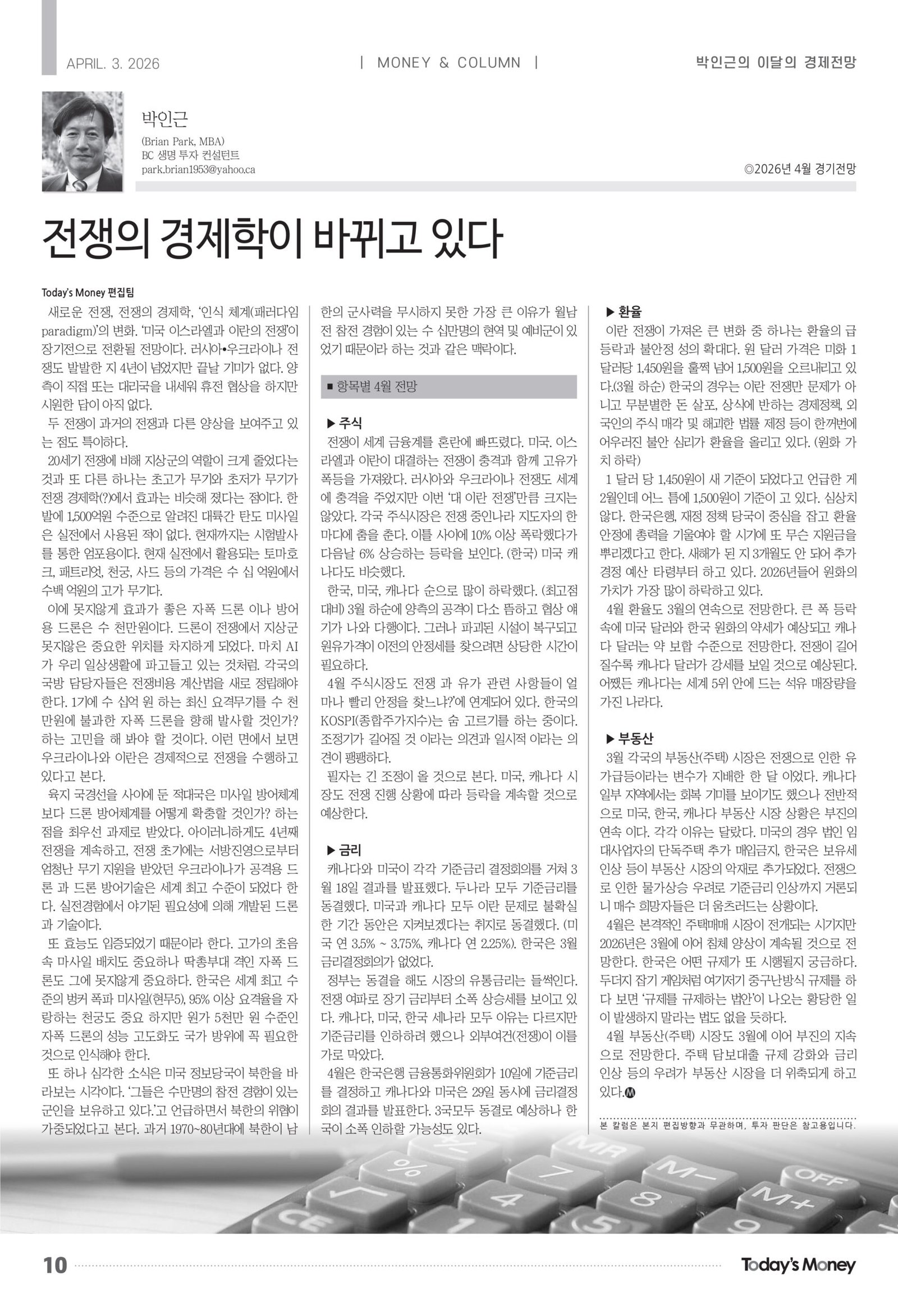 전쟁이 세계 금융계를 혼란에 빠뜨렸다. 미국. 이스라엘과 이란이 대결하는 전쟁이 충격과 함께 고유가 폭등을 가져왔다. 러시아와 우크라이나 전쟁도 세계에 충격을 주었지만 이번 ‘대 이란 전쟁’만큼 크지는 않았다. 각국 주식시장은 전쟁 중인나라 지도자의 한 마디에 춤을 춘다. 이틀 사이에 10% 이상 폭락했다가 다음날 6% 상승하는 등락을 보인다. (한국) 미국 캐나다도 비슷했다.